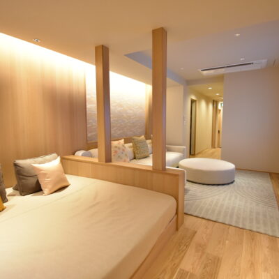 広さ200㎡の贅沢空間。独立型のリビング、ダイニング、露天風呂などをしつらえた洗練されたお部屋。